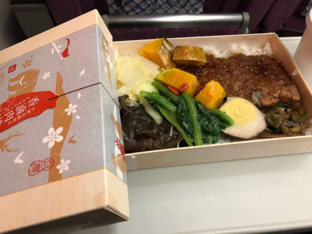 It may also be the Japanese style that they are selling “Eki-ben (lunch box on the train)”. I couldn’t find them in the high-speed trains in the mainland China. The one I had bought was a simple Bento which has deep fried pork ribs and a seasoned boiled egg on the rice, but the taste was reasonable. Although there is no elaboration in coloring or arrangement like the Japanese Eki-ben, it made me think that Japanese are too used to luxury.